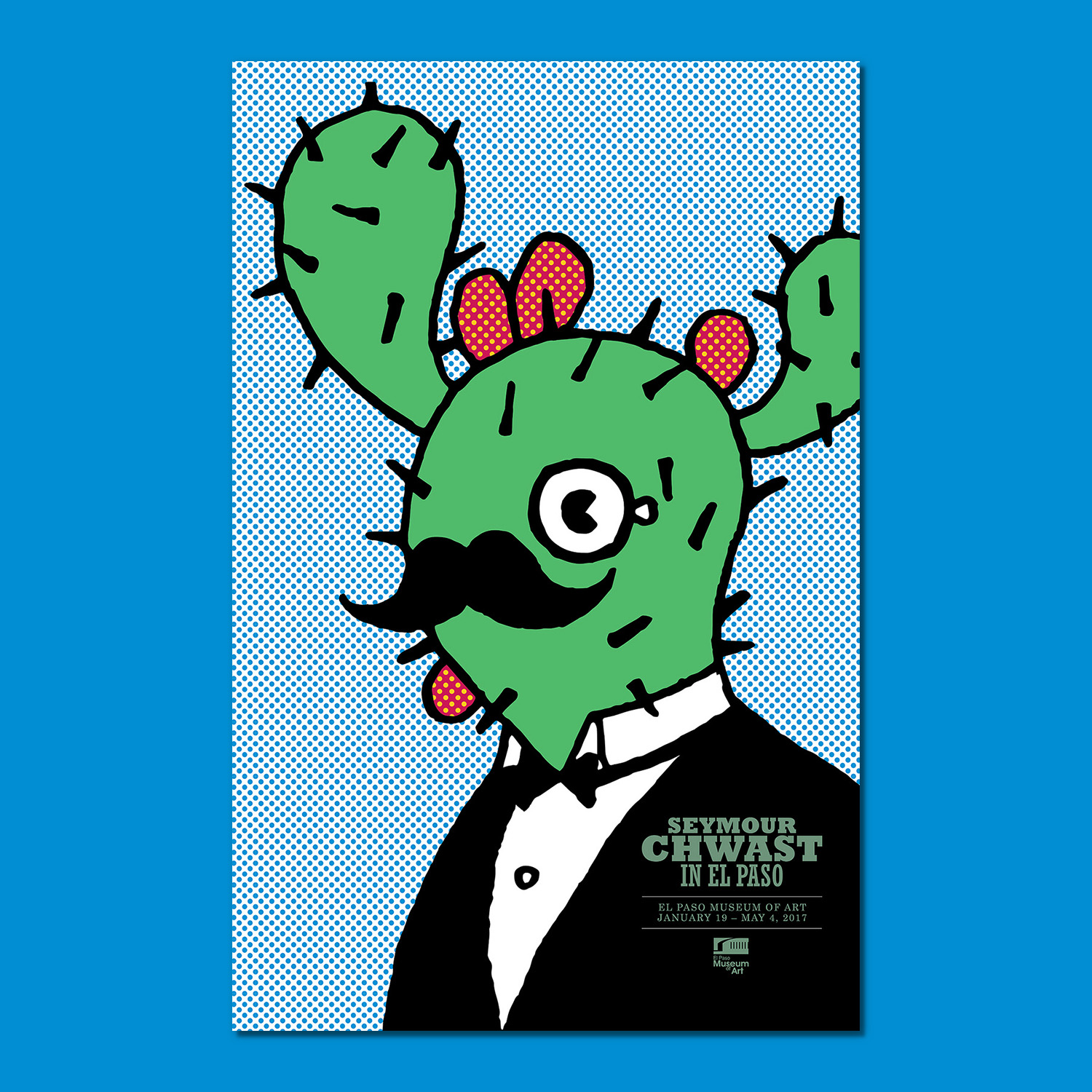 This poster was selected for the 2016 Annual UTEP Juried Student Art Exhibition at the Rubin Center, juried by Iranian graphic designer Parisa Tashakori. The poster depicts a common nickname in mexican culture that is "El nopal en la frente" (The cactus on the forehead), meaning that someone is clearly "Mexican looking". Giving the huge Mexican herritage in El Paso it was very fitting for Seymour Chwast comic style.