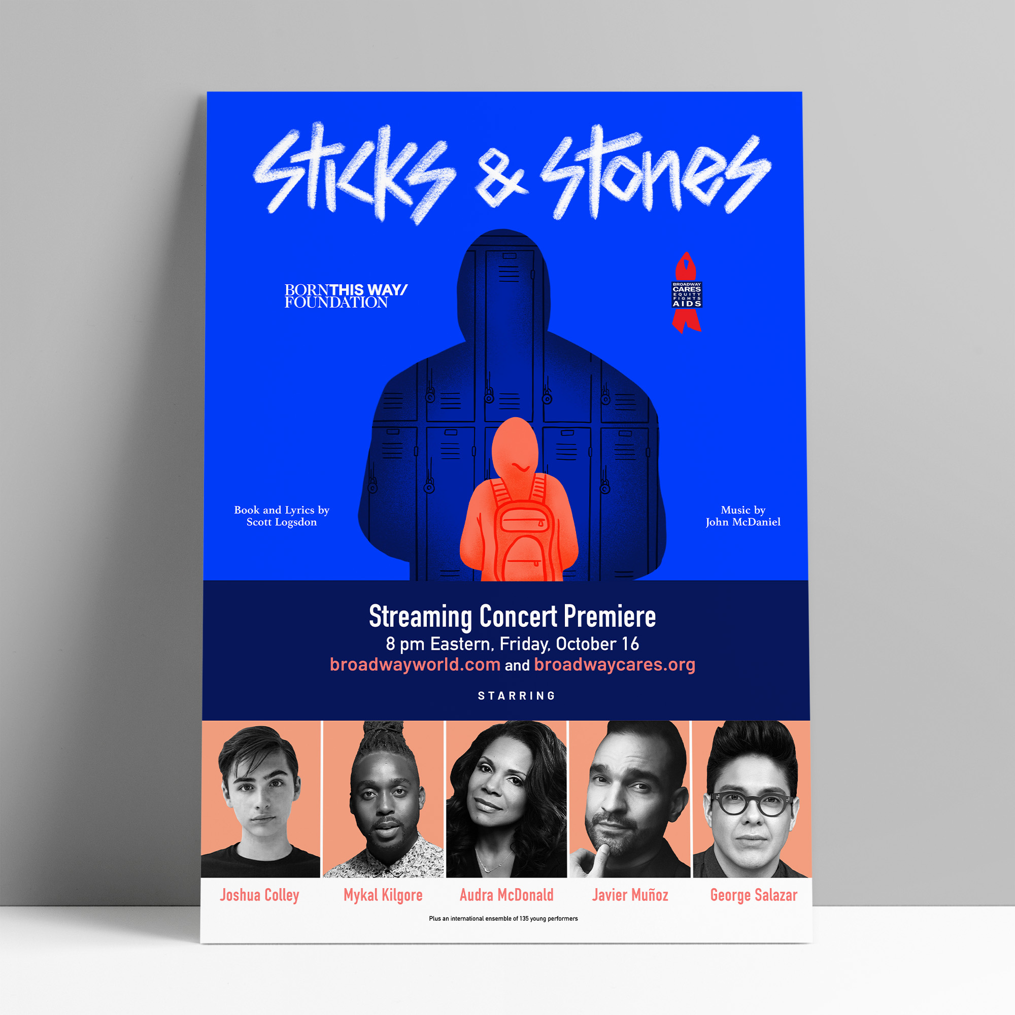 Featuring Audra McDonald, Javier Muñoz, and George Salazar, this new musical reimagined the story of David and Goliath to tackle teen bullying. I was in charge of designing the whole identity of the event, I focused on the juxtaposition of David and Goliath, that is portrayed as students.